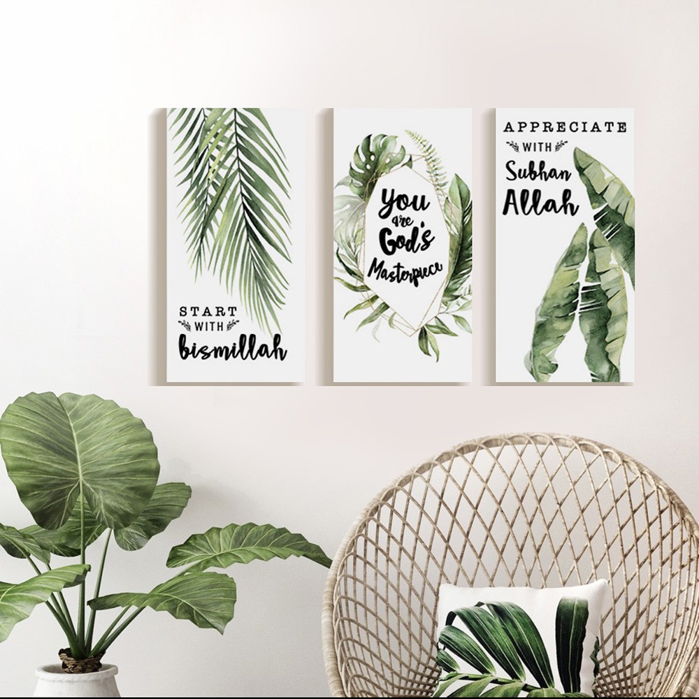 DAPAT 3 Hiasan dinding kamar pajangan wall decor rumah quotes islami tropical daun Poster aesthetic
