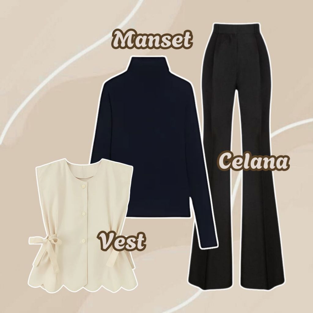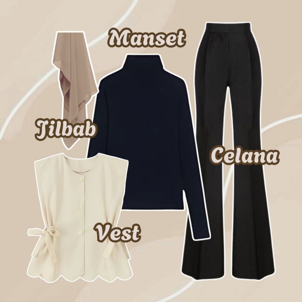 One Set 4in1 Vest Manset Celana Cutbray Hijab Segi Empat Bella | OOTD outfit wanita cewek anak remaja hijab modern kekinian korean style hangout main ngopi cafe kuliah DL163