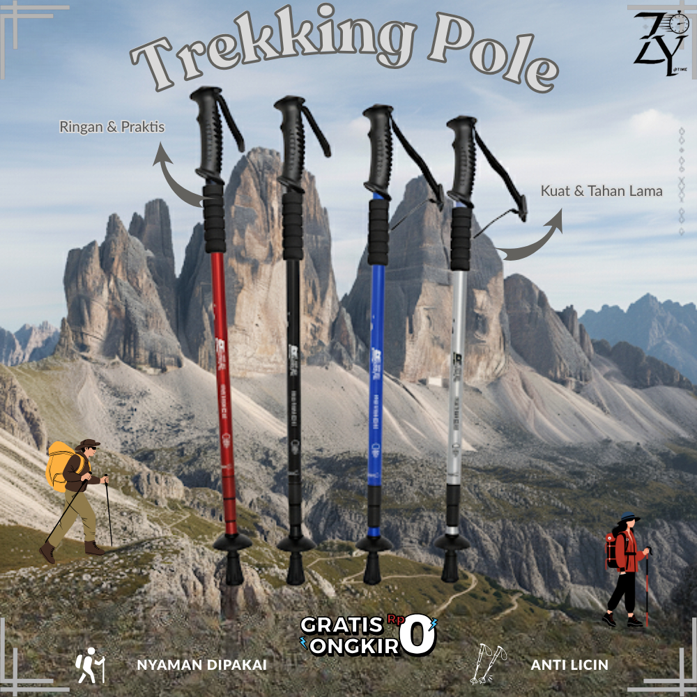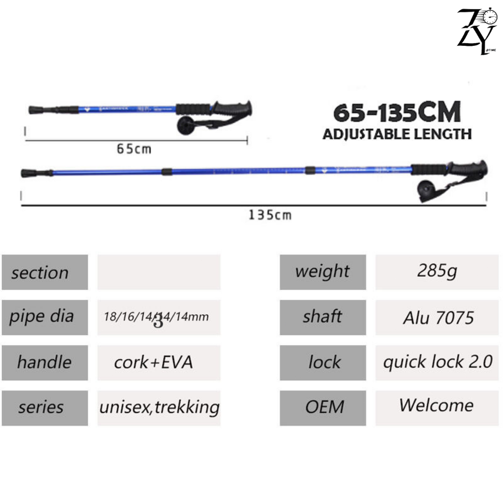 THE TIME-Trekking Pole Outdoor Tongkat Hiking Anti Slip Aluminium Panjang 65-135cm Dapat diatur