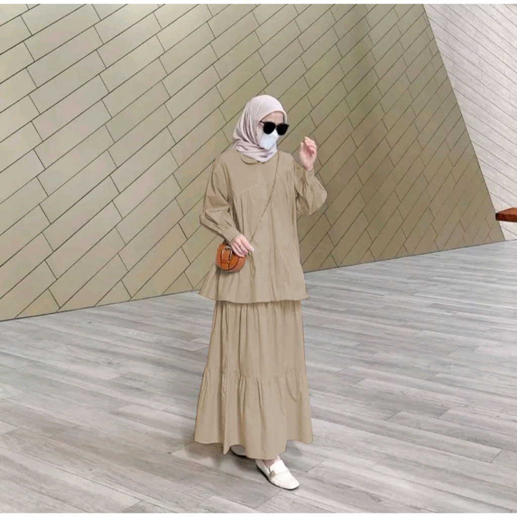 Byqueen Setelan Oversized Terry set 2 In one Atasan + Rok Busui friendly Linen rami
