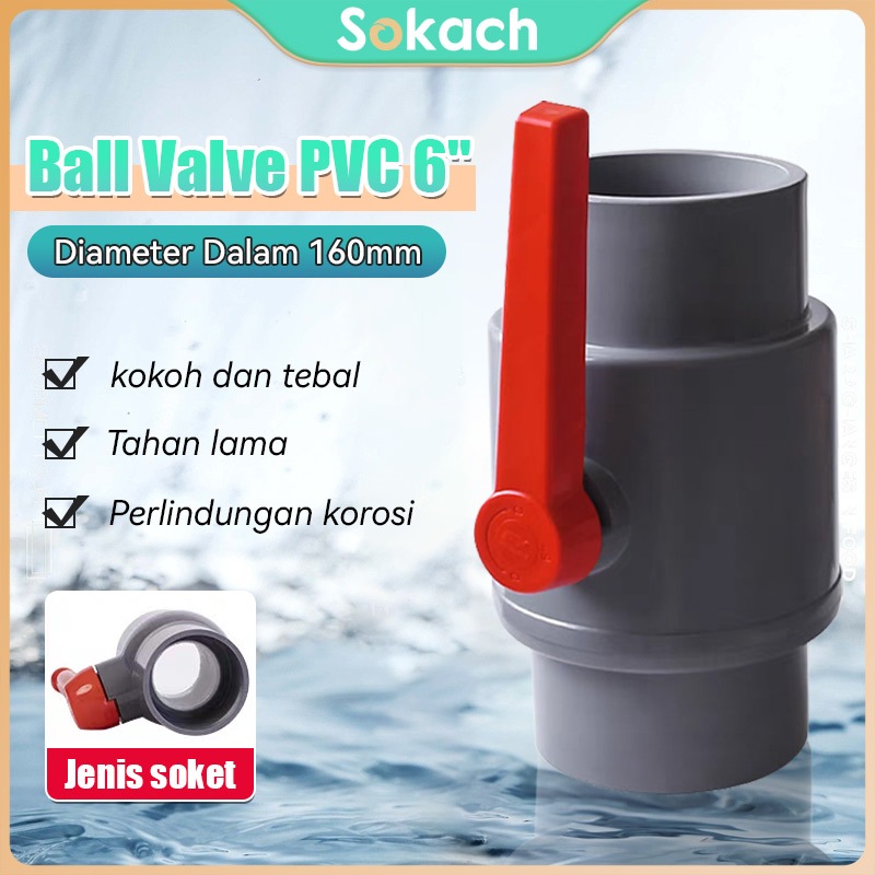 Ball Valve PVC 6" Diameter Dalam 160mm Stop Kran Katup Penutup Lubang Kamar Mandi Katup Pemban Air Bahan Tebal Murah NS
