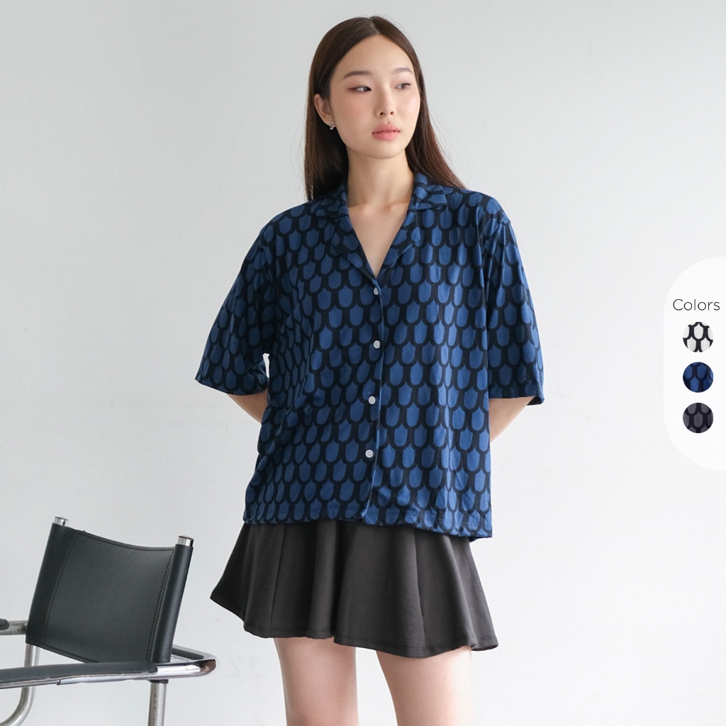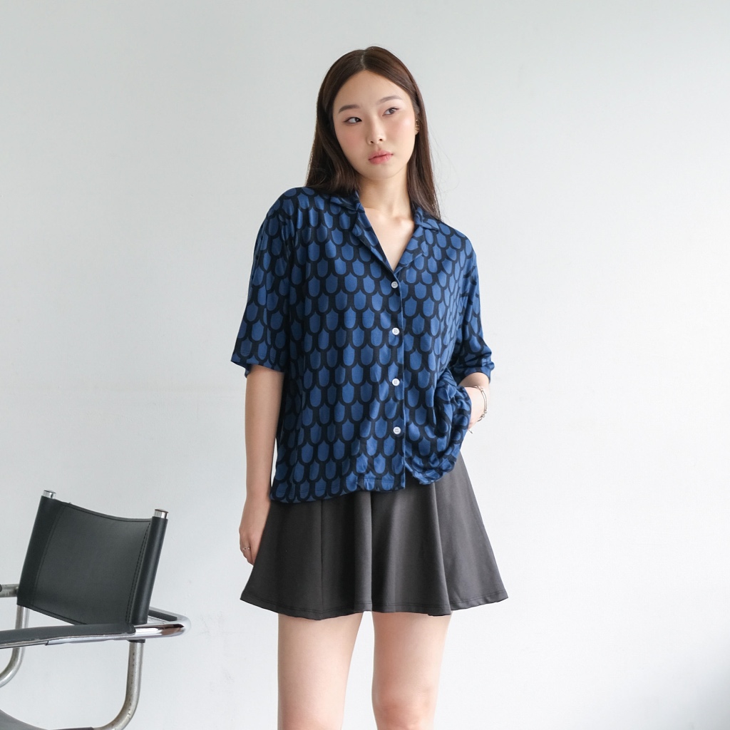 Isla Niki Scale Patern Shirt - Kemeja Wanita Lengan Pendek - Baju Atasan Wanita Motif