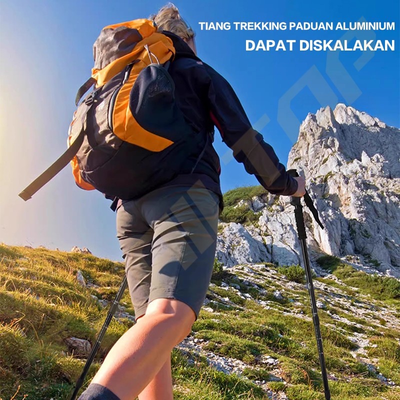 Paus Biru - Trekking Pole Lipat Tongkat Gunung Anti Slip Tongkat Hiking Dapat Diatur 65-135cm