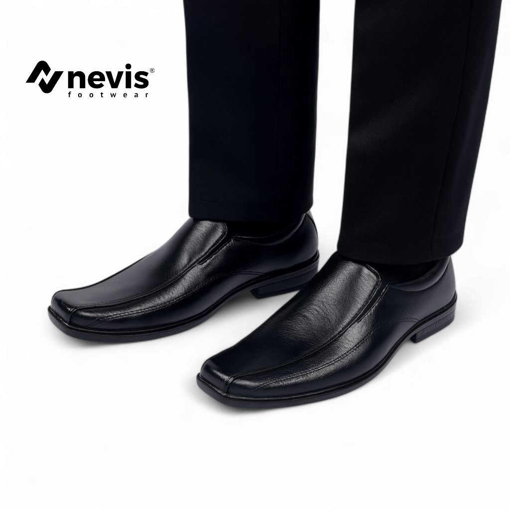 NEVIS Sepatu Pantofel Pria Formal NVS 08 Kantor Kerja Bisnis Kondangan Hitam Kulit - 22 Zever Praba