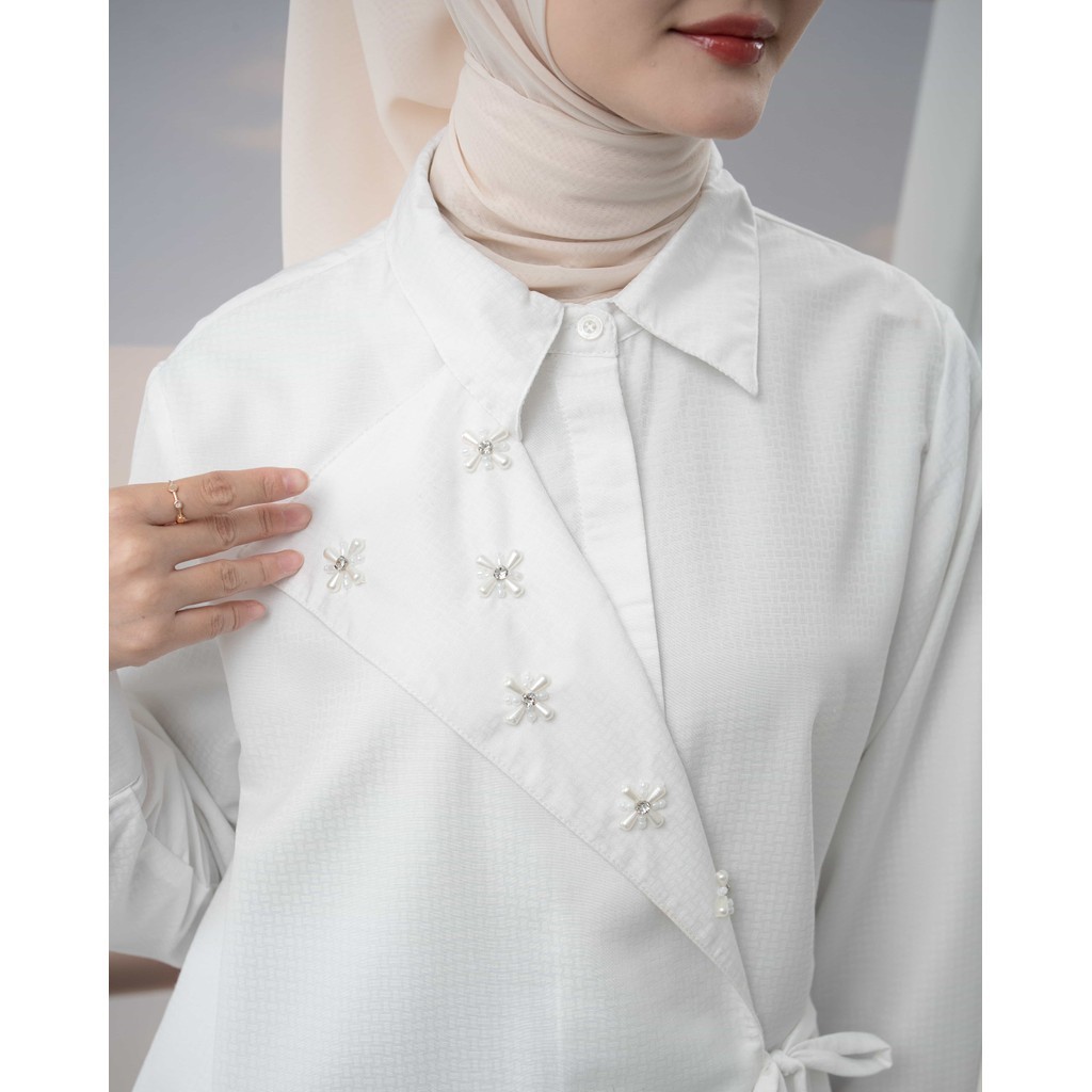 MAYOUTFIT JILLY SHIRT | KEMEJA WANITA ATASAN KIMONO AKSEN BEADS LAYER KANCING HIDDEN