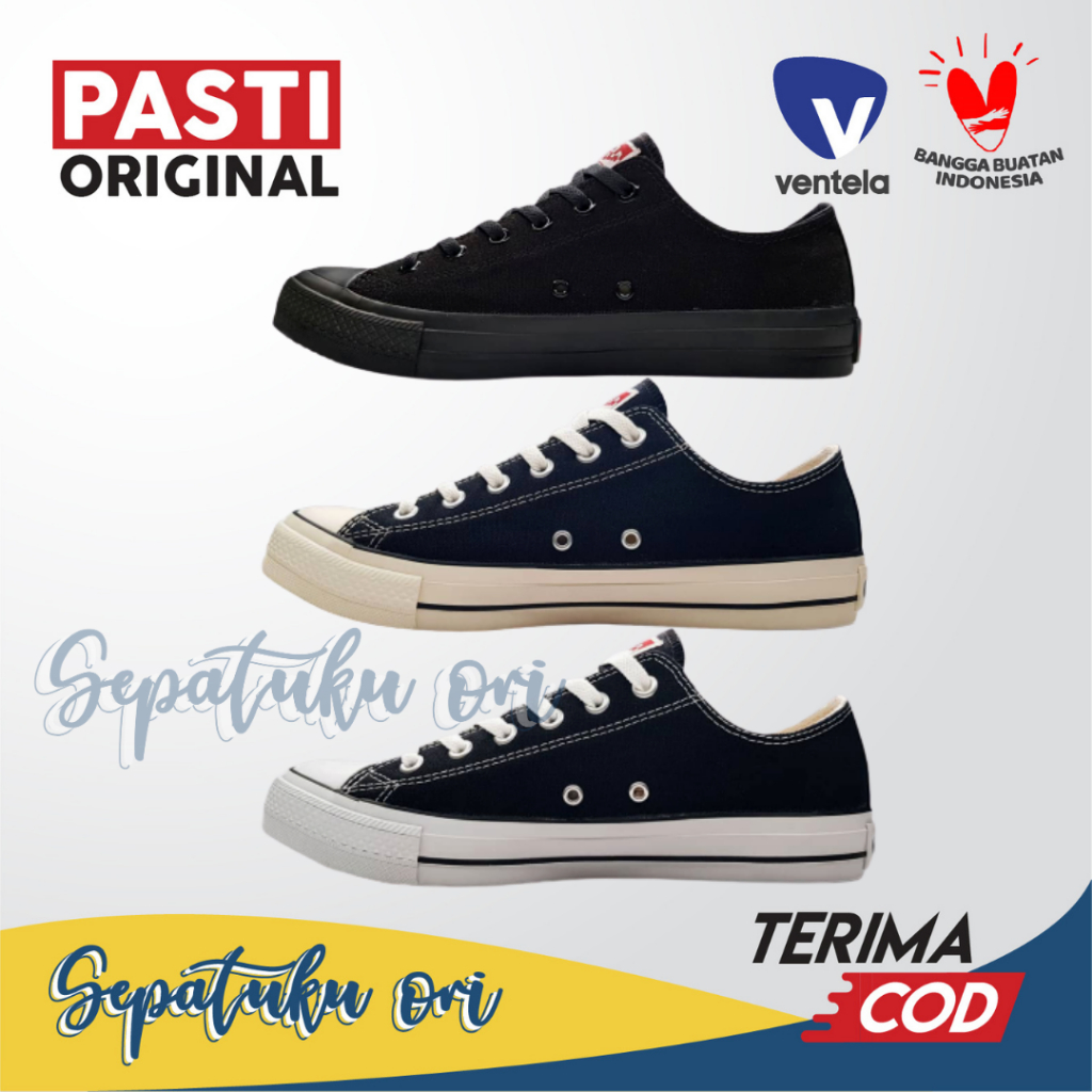 Sepatu Ventela Ethnic Low Black Natural White Full All Black Original | Sepatu Sekolah Hitam Vantela Ventella Ethnic Low