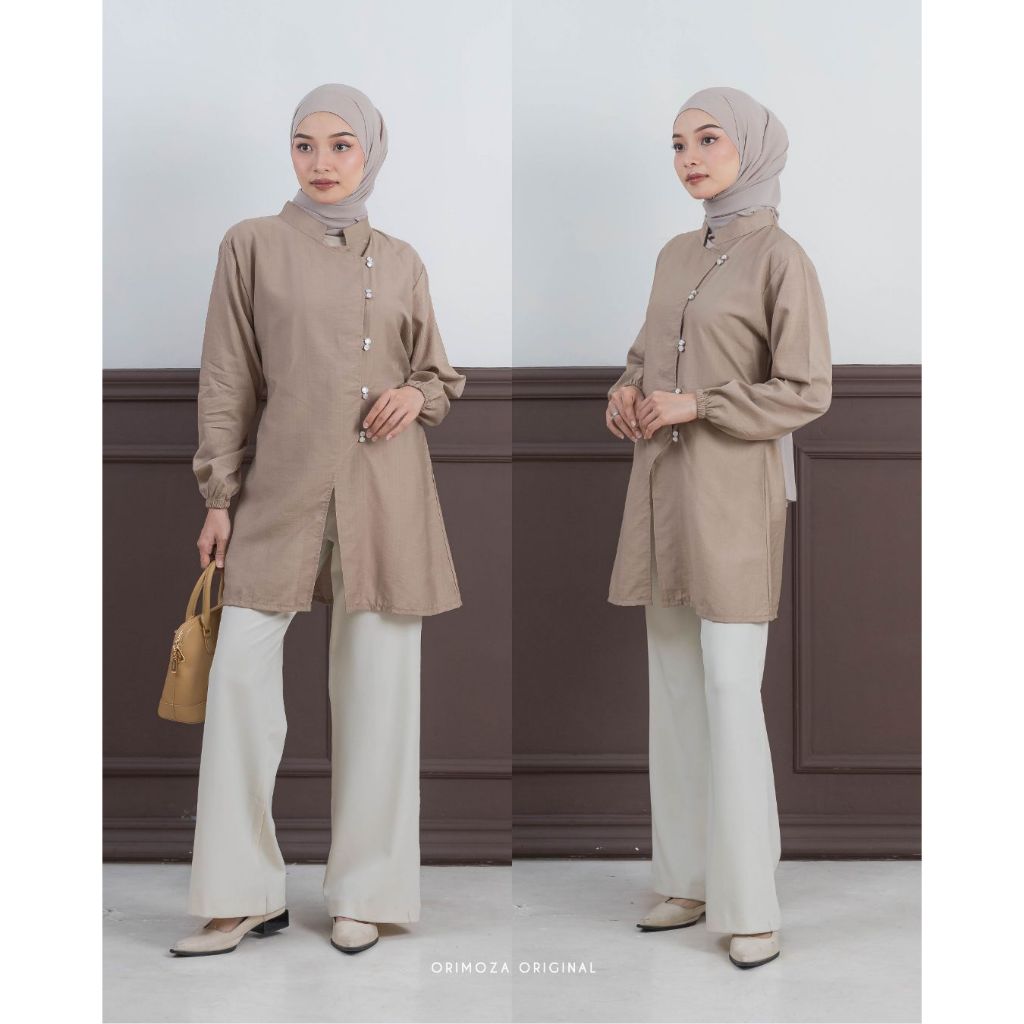 Orimoza Jema pearl tunik wanita linen impor