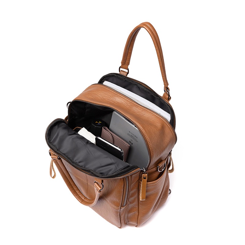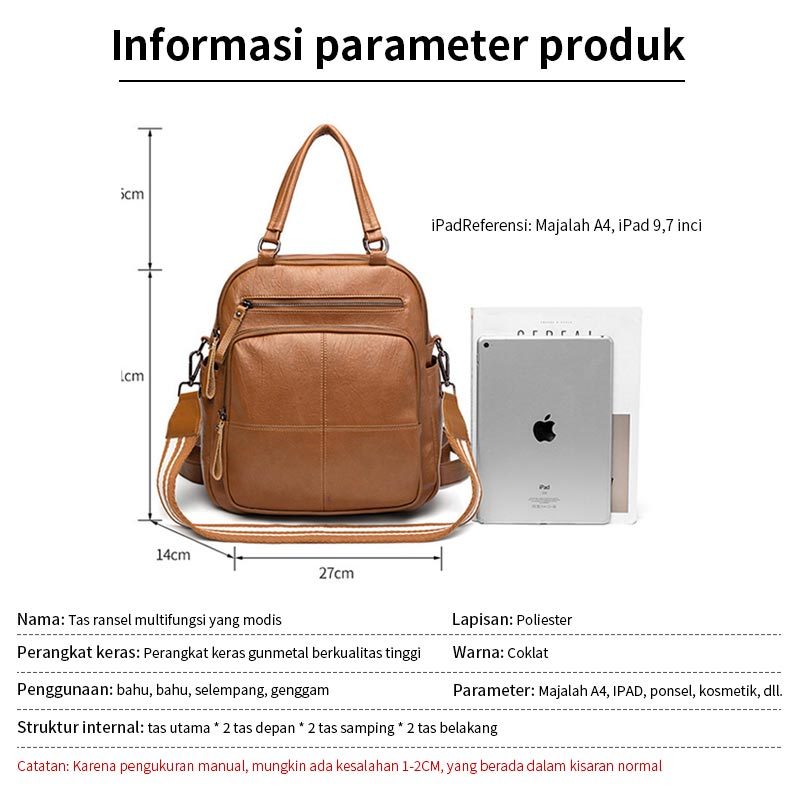 Tas Ransel Wanita Kulit Asli 4 in 1 Tas Ransel Gendong CoklatMinimalis Anti Air Backpack Pelajar Travel Kantor YLY
