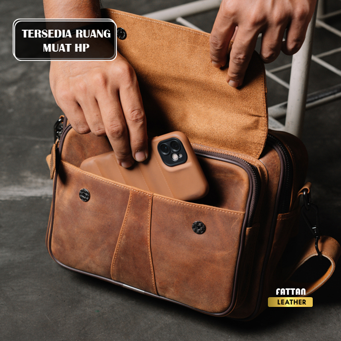 Tas Selempang Kulit Sapi Asli Pria Original 100% Premium Crazy Horse Reven Bima Leather Bag