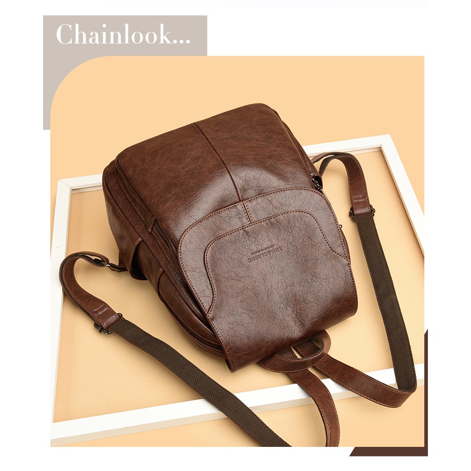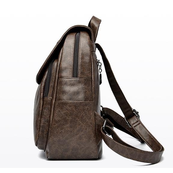 VOYAR Tas Ransel Fashion Kulit Coklat PU Tahan aus Ransel retro sederhana
