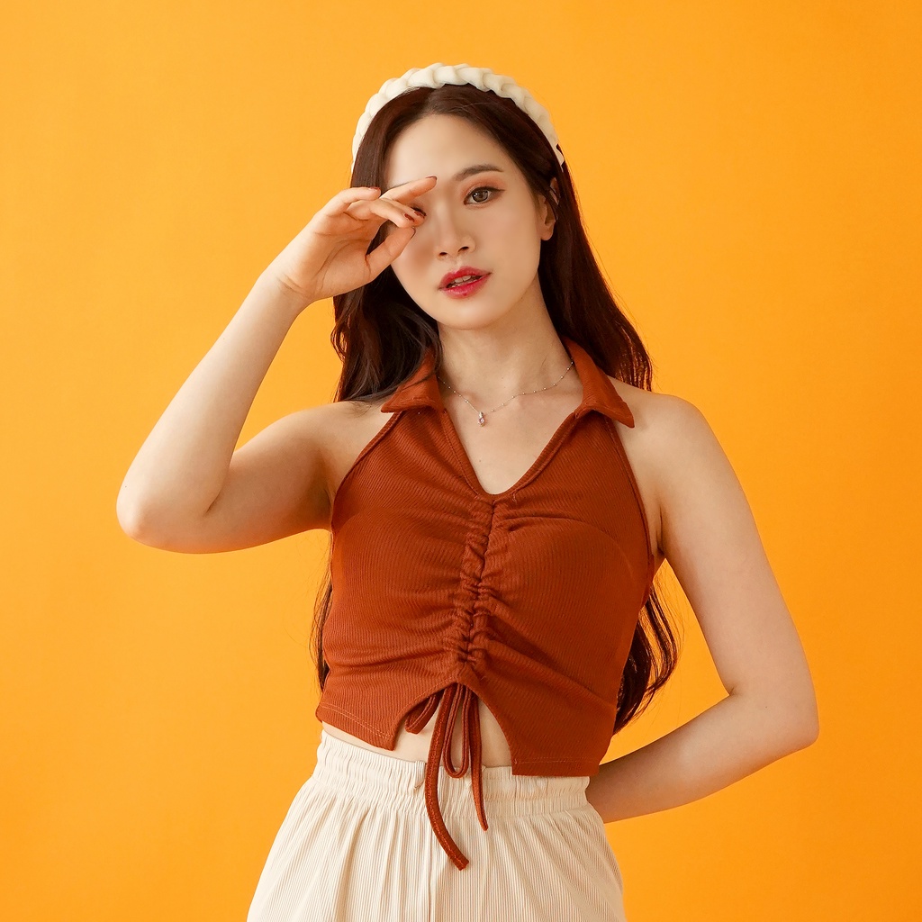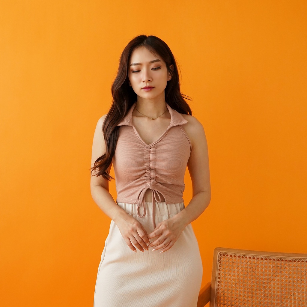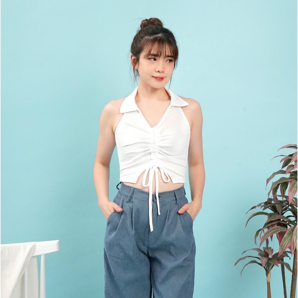 OROY Korean Tanktop Serut Kekinian Crop Tank Top Korea Rajut V-Neck Crop Top OR1190