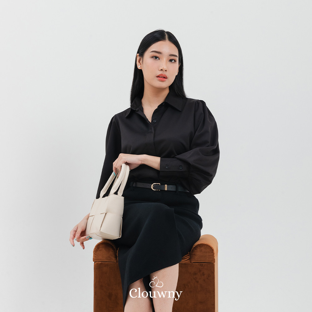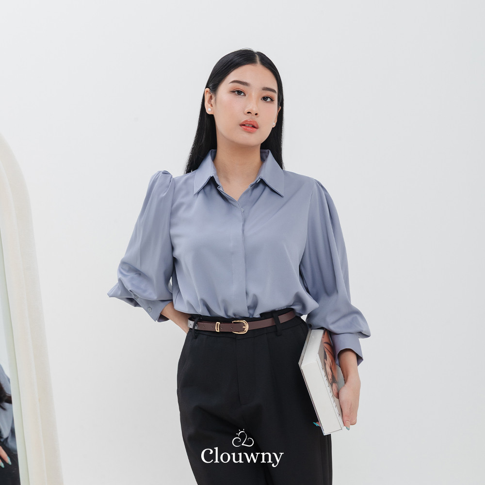 CLOUWNY SHANIKA SHIRT LONGSLEEVE ATASAN KEMEJA WANITA LENGAN PANJANG BERKERAH PREMIUM COTTON