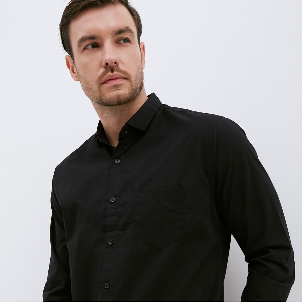 M231 Kemeja Pria Basic Polos Panjang Hitam 1468D