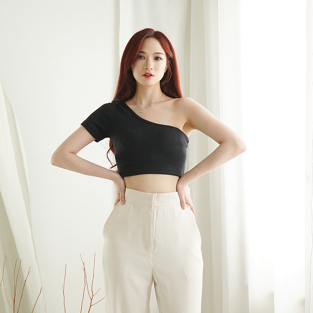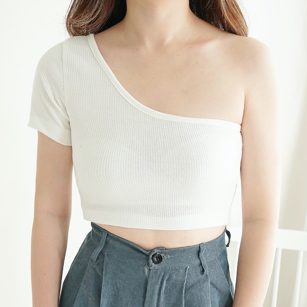 Atasan Wanita Croptop Knit One Shoulder Wanita Crop Tank Top Rajut 128