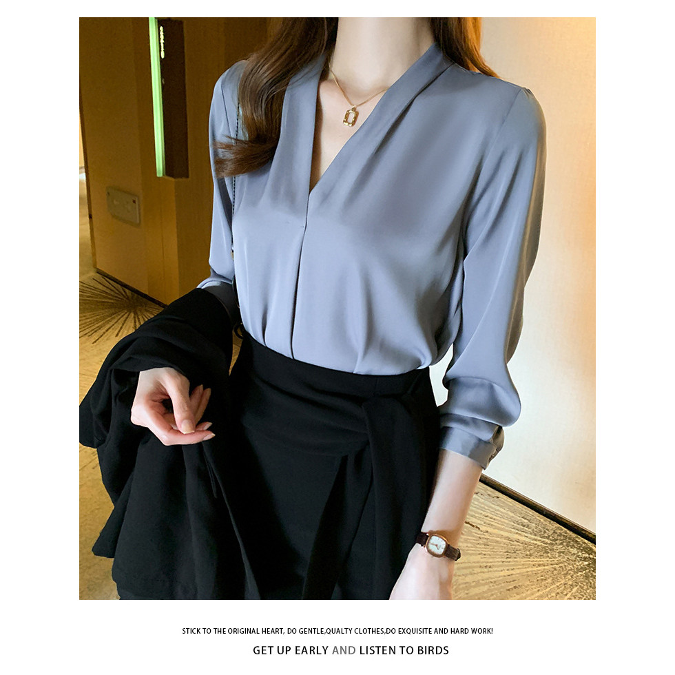 YURUMA KEMEJA KERJA WANITA PREMIUM V-NECK SATIN - GAYA FRENCH CHIC & FORMAL