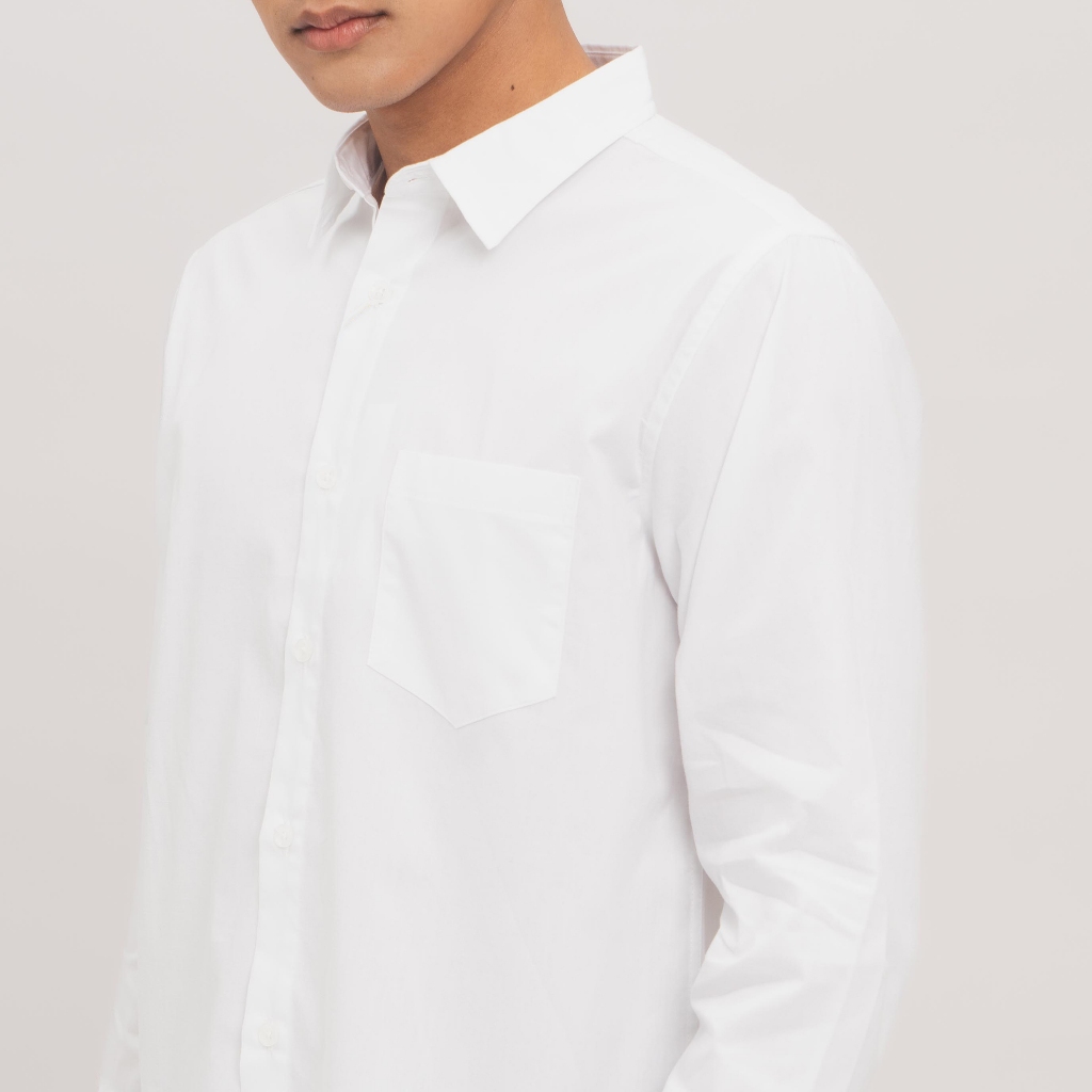 M231 Kemeja Pria Basic Polos Panjang Putih 1468A