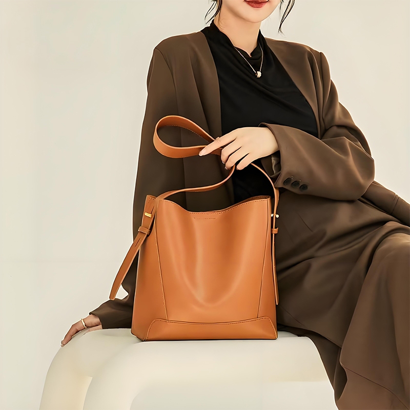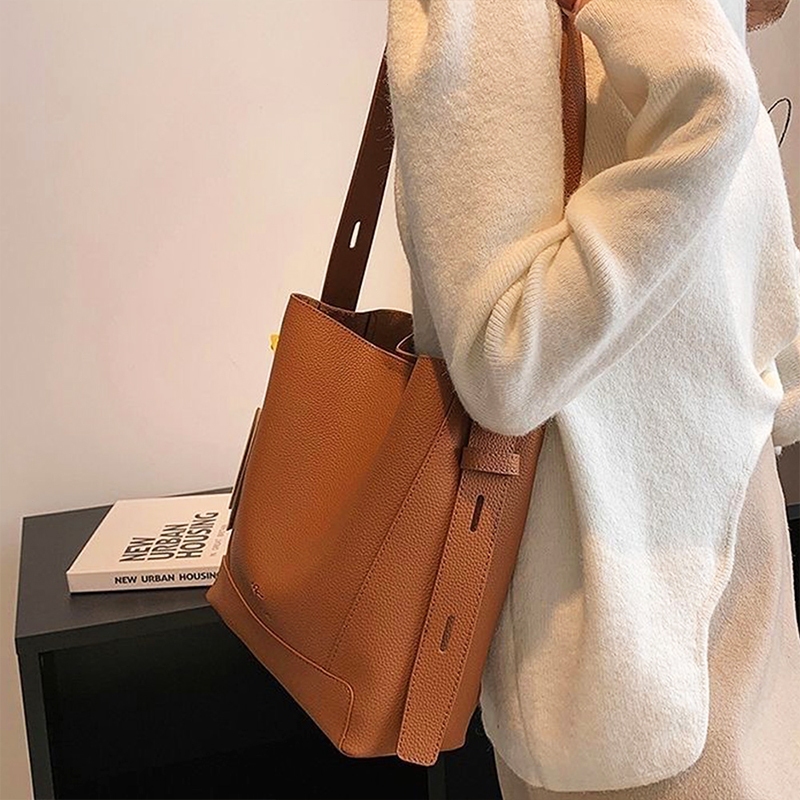 Tas Bahu Wanita Tote Bag Kulit PU Kapasitas Besar Shoulder Bag Cewek Simple Polos Gaya Korea Tas Kerja Kantor Elegan Kek