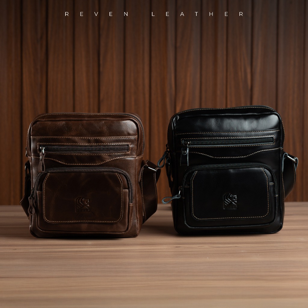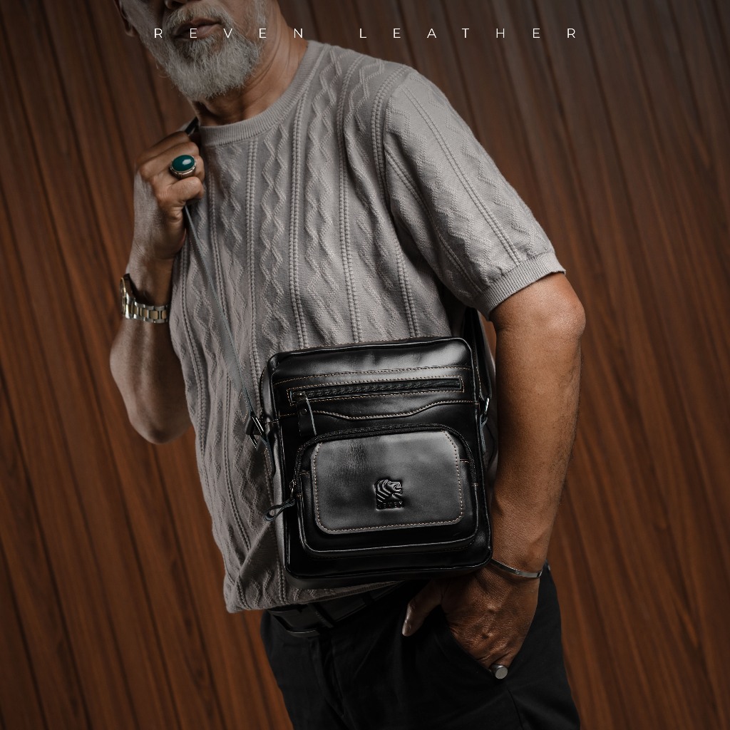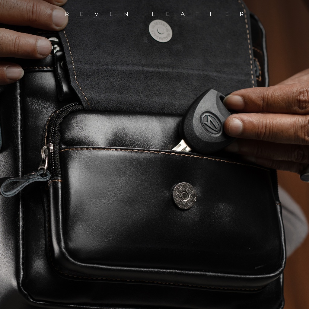 Reven Leather Breaker Slingbag - Tas selempang Pria Kulit Sapi Asli Premium Gratis Dompet STNK