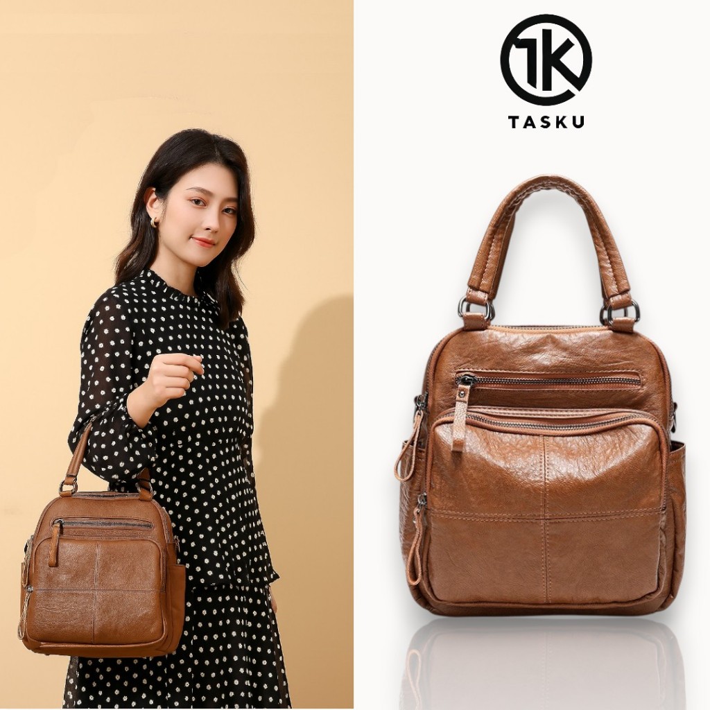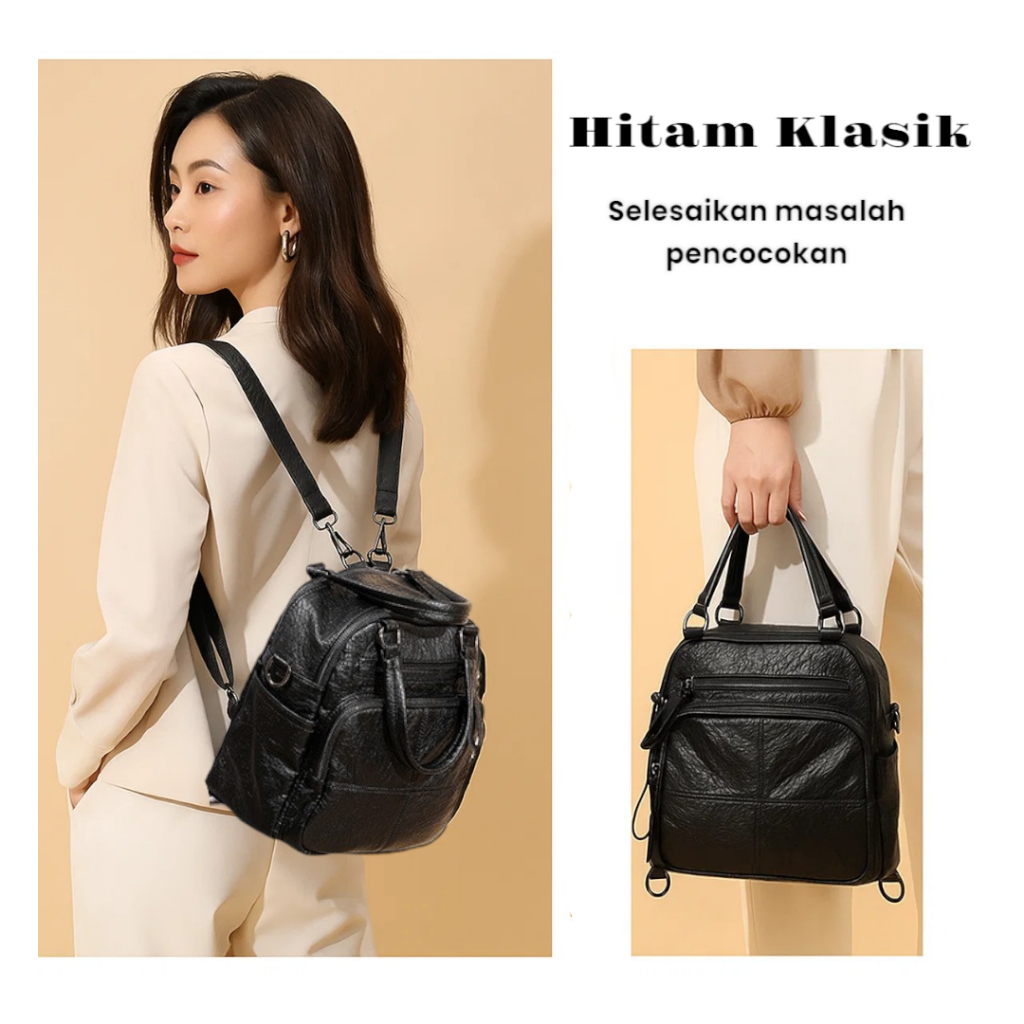 [Ready Stock] Tas Ransel Wanita 3IN1Terbaru 2025 Anti Air Multifungsi Kulit Aasli Tas Selempang Travel Kerja