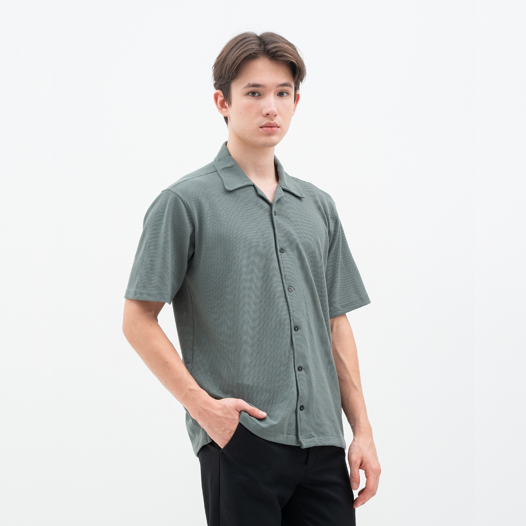Kemeja Casual Pria Lengan Pendek Waffle Knit | Casual Shirt Short Sleeve