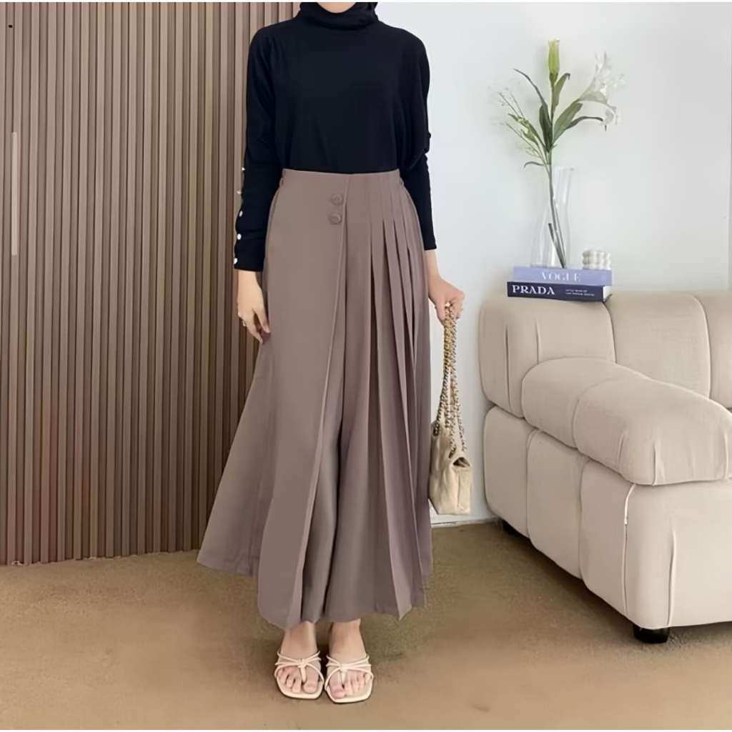 Kulot Pleats - Celana Kulot Rok Wanita - Celana Bawahan Casual Formal Daily - Celana Kulot Husna Kancing 2