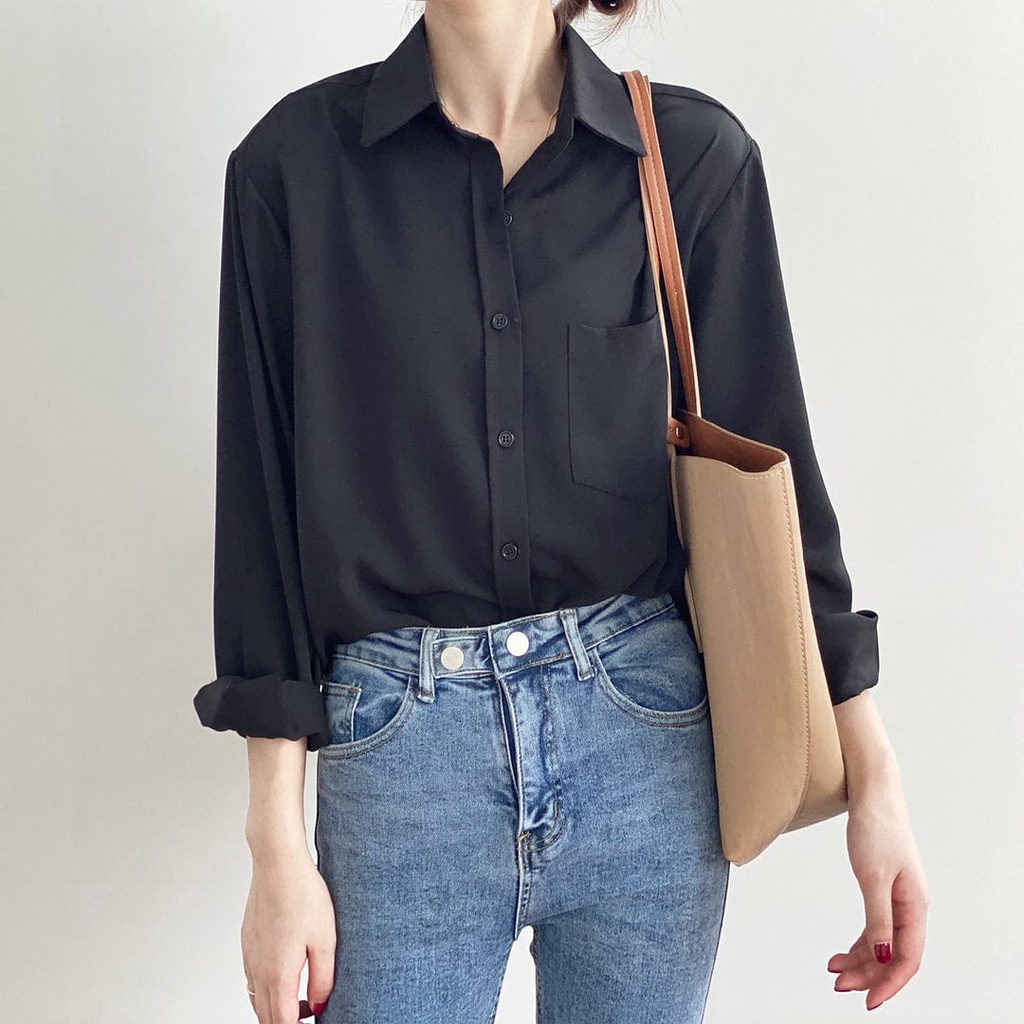 Vallina Odie Shirt Basic Kemeja Atasan Blouse Polos Wanita Kerja Korean Style Premium