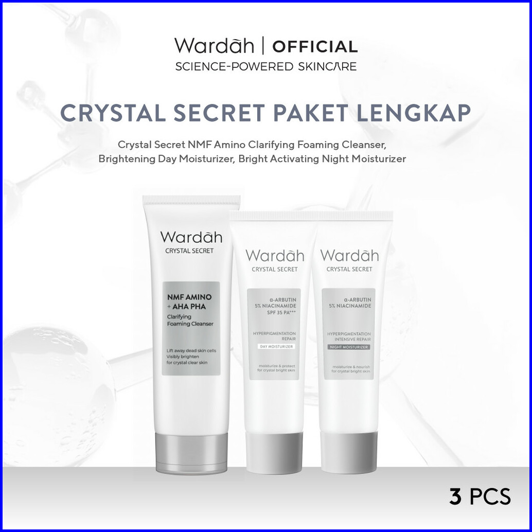 Wardah Paket Crystal Secret Lengkap - Nmf Amino Aha Pha Clarifying Foaming Cleanser 100 M -arbutin 5 Niacinamide Day Moi