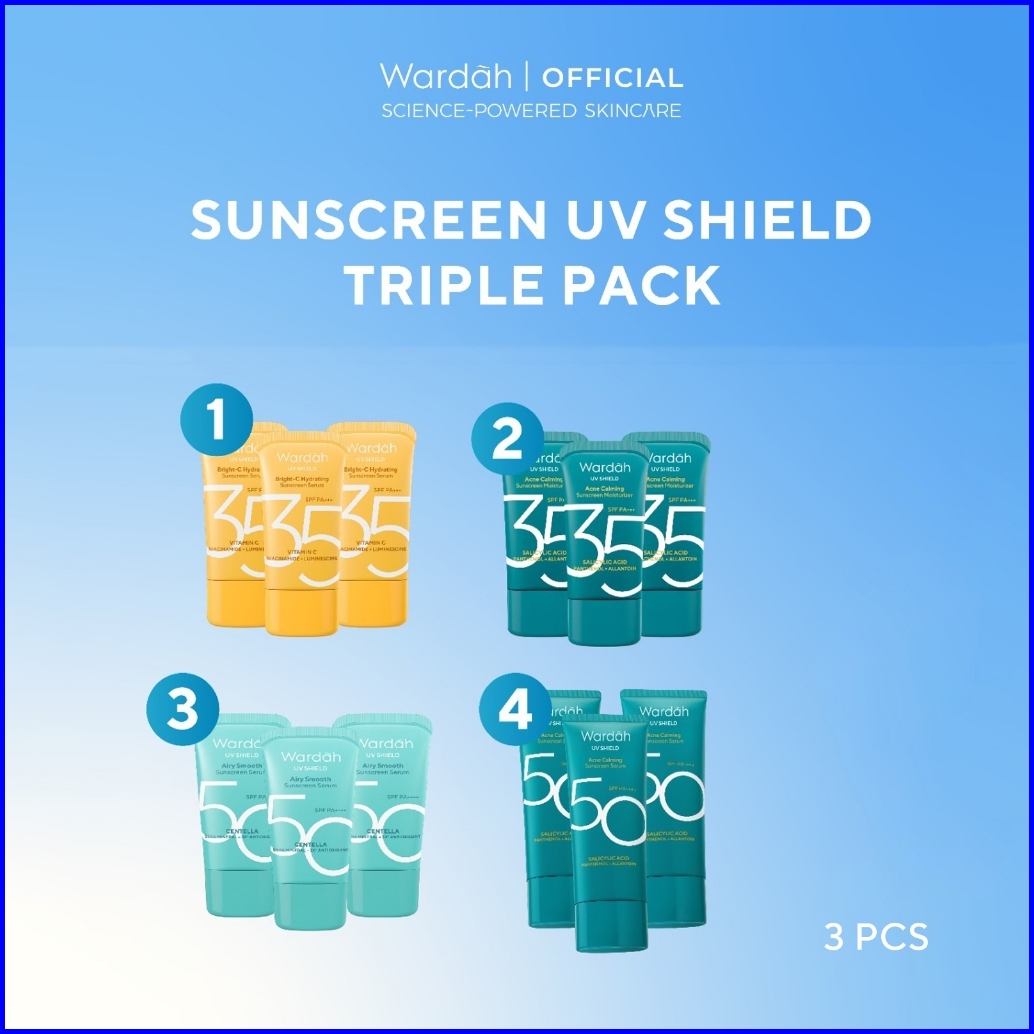 No 1 Sunscreen Di Indonesia Wardah Triple Pack Uv Shield Sunscreen Spf 35 Spf 50 Airy Smooth Essential Gel Acne Calming