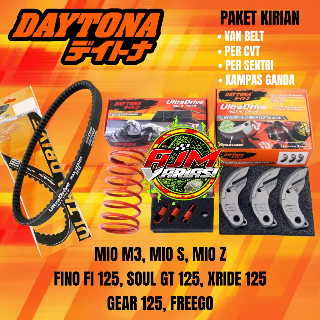 Paket Kirian Daytona Vanbelt + Per CVT + Per Sentri + Kampas Ganda Mio M3, Mio S, Mio Z, Xride 125, Soul GT, 125, Fino 125, Gear, Freego 2PH