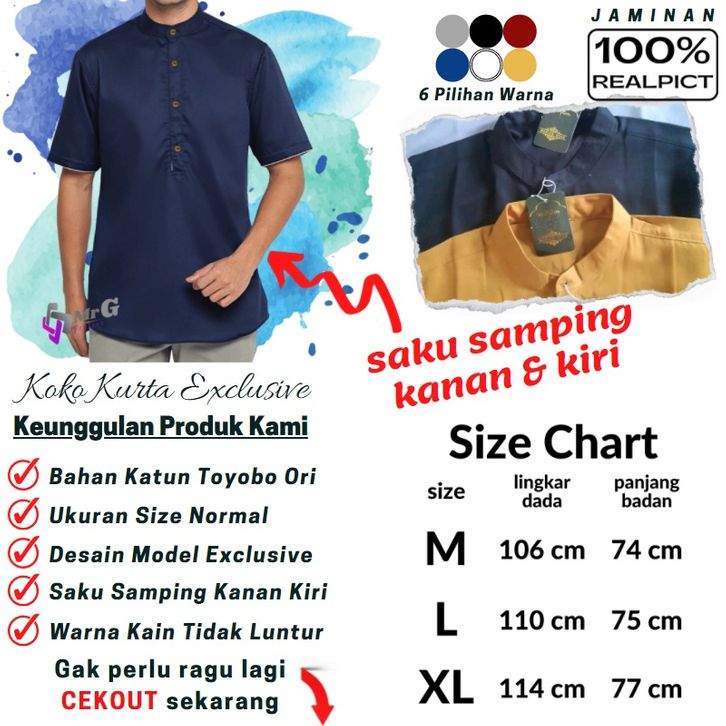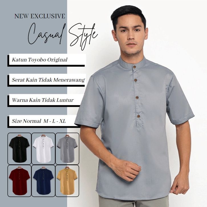 [Star] Baju Koko Pria Dewasa Koko Kurta Taqwa Pakaian Muslim Lengan Pendek Matt Katun Adem Tebal Murah Terlaris