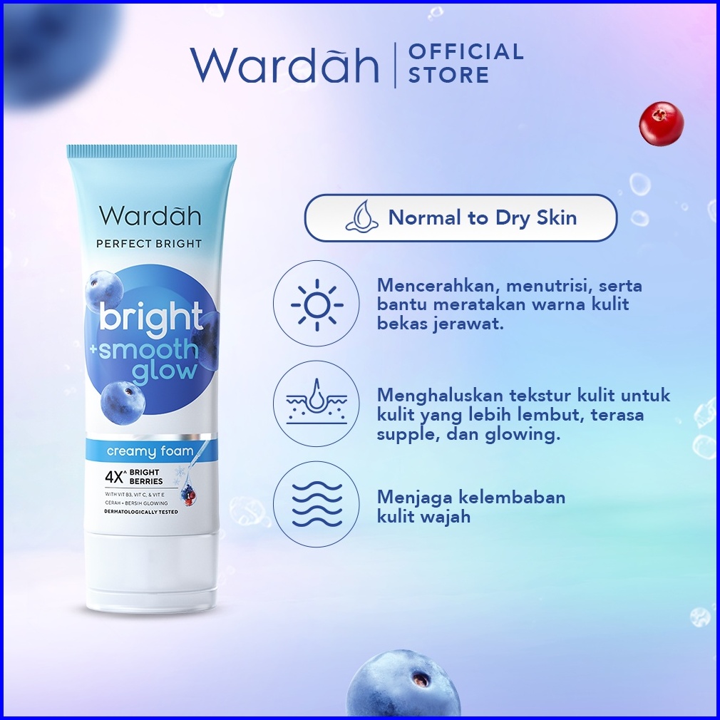 Wardah Perfect Bright Creamy Foam Brightening Smooth Glowing Facial Wash Untuk Semua Jenis Kulit Terutama Kulit Kering M