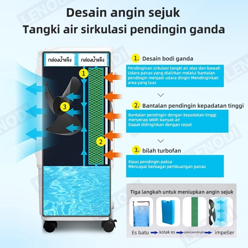 LENODI 60L Air Cooler Rumah/Kipas uap air 12000BTU/AC portabel/dengan kendali jarak jauh/ Tower Fan/Kipas pendingin udar