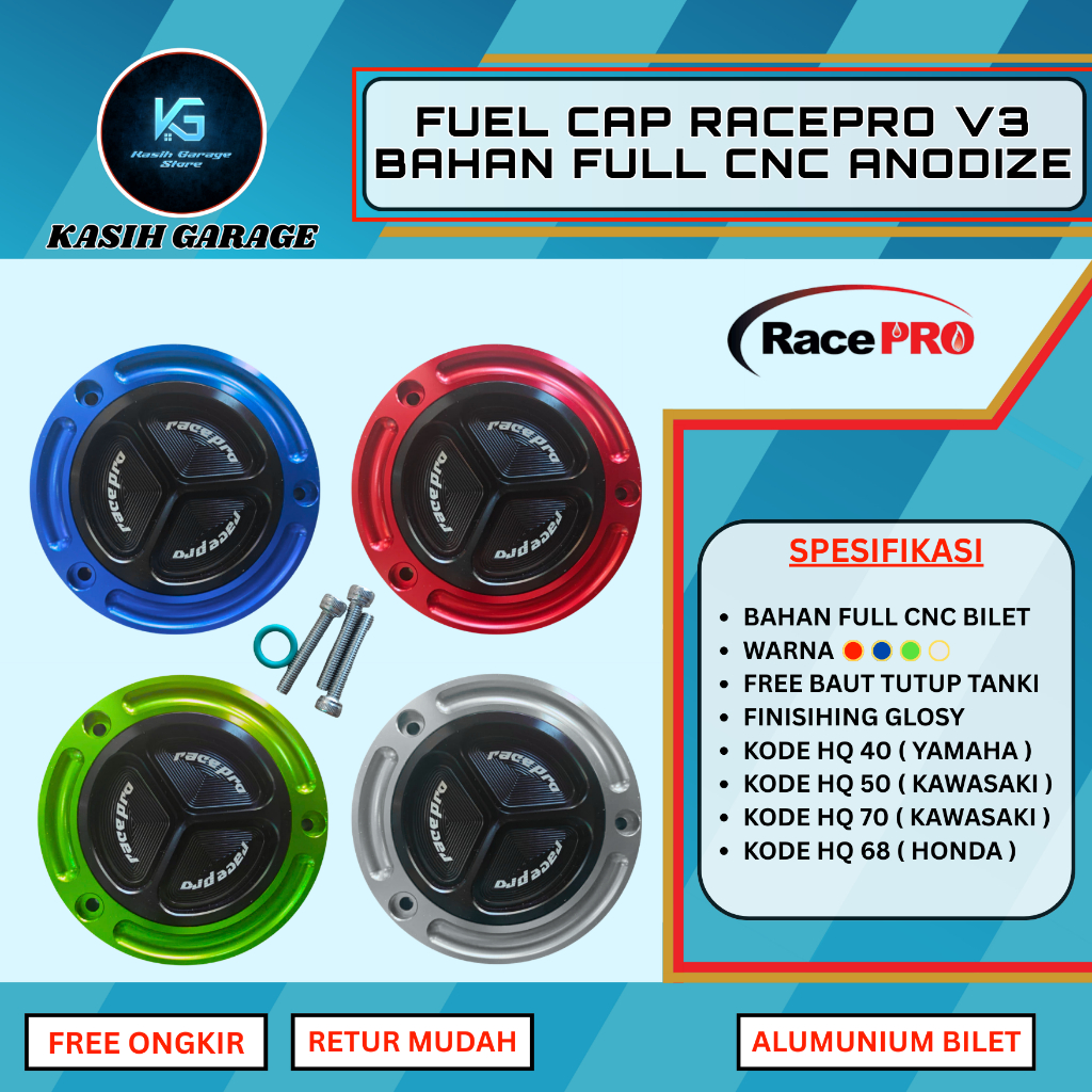 Fuel Cap Racepro V2 Yamaha R15 R25 CBR GSX Racing Fuelcap Tutup Tanki Race Pro Full cap