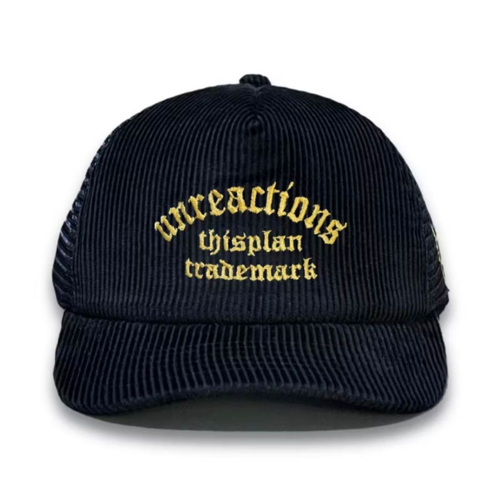 PROMO Model Baru Topi Jaring Corduroy Unreactions Black Trucker hat Black Rekomen pria Corduroy Tebal Kekinian