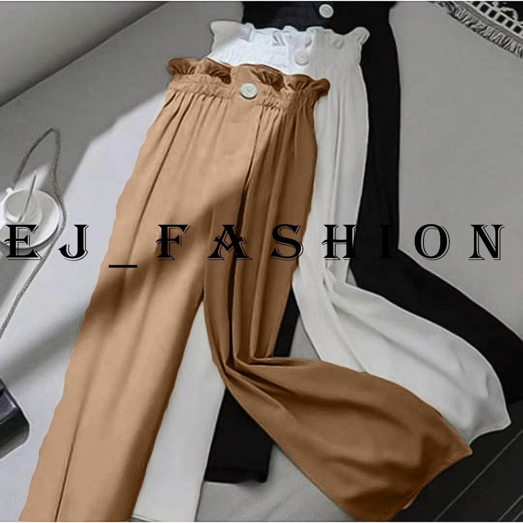 EJ Fashion Celana Wanita Kulot Panjang Highwaist Kerut Susun Kancing 1 Terbaru 2024 Kekinian Style