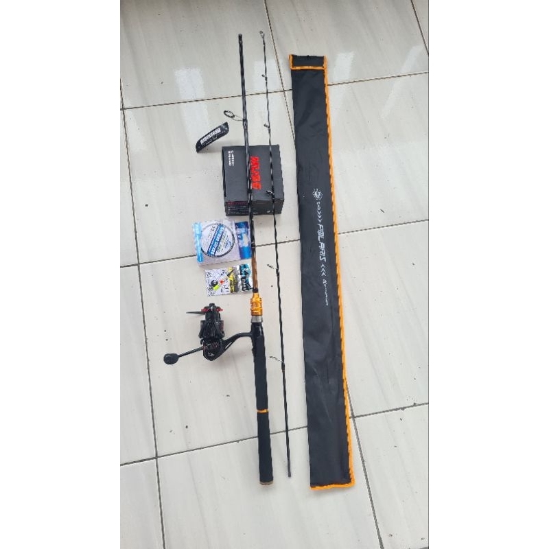 Set Pancing Pinggir Laut Empang Kolam Galatama Lengkap Siap Pakai Joran Carbon Solid Reel Power Handle Kekuatan Sampai 15kg