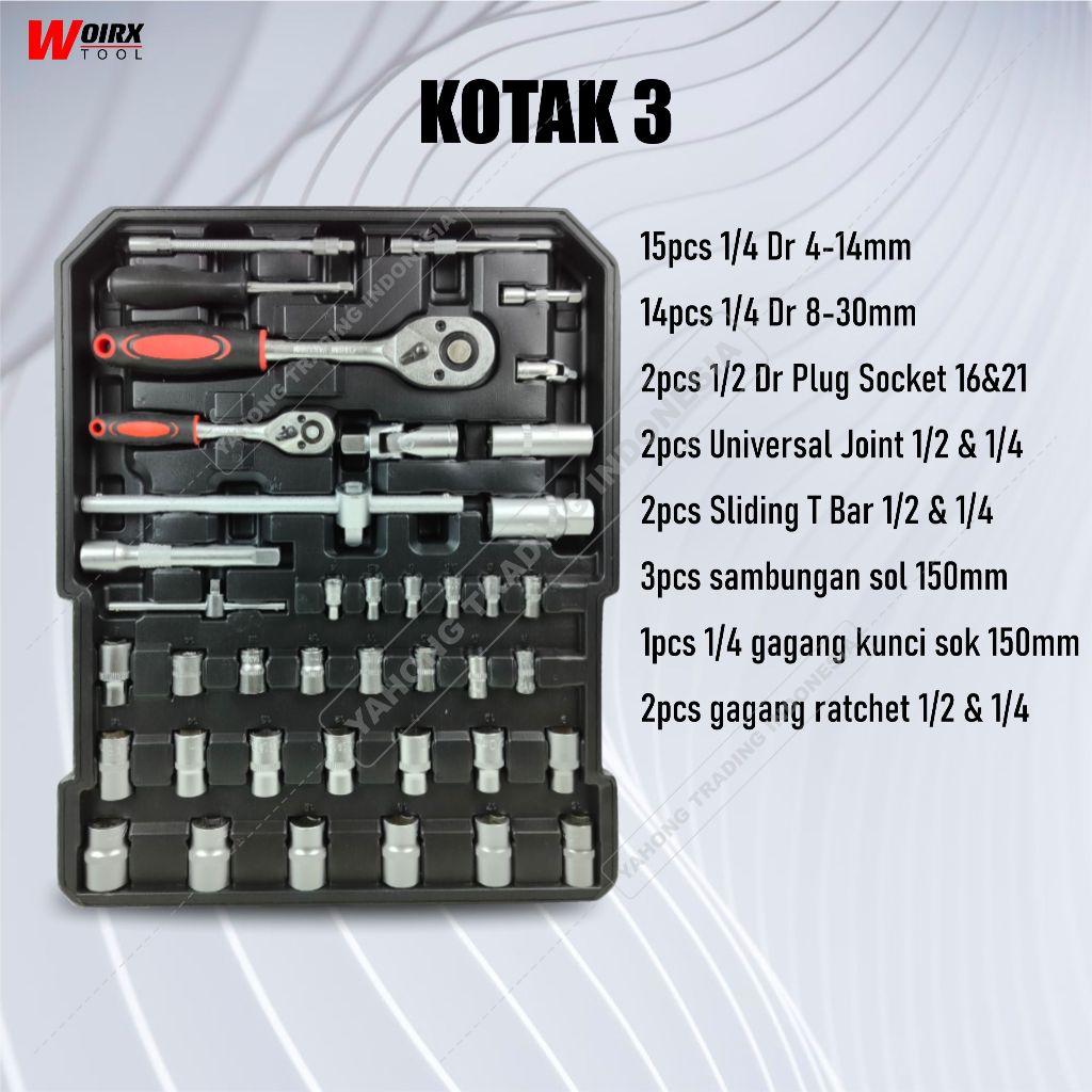 Kunci Sok 187 Pcs Sock Sok Set Perkakas Pertukangan 187 Pcs Socket Tool Kit WOIRX TOOL