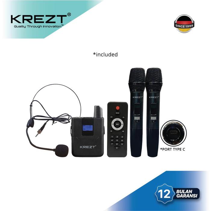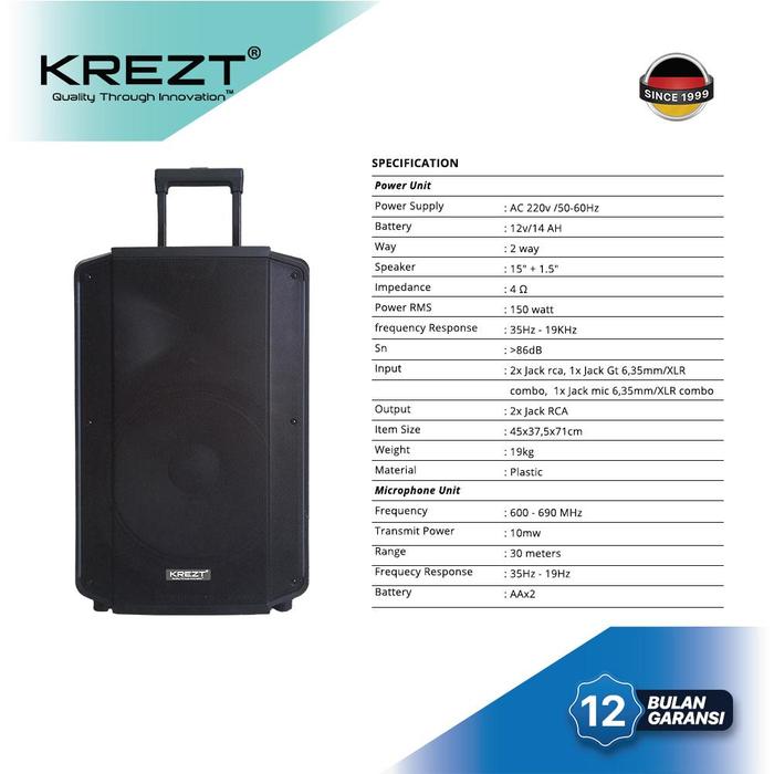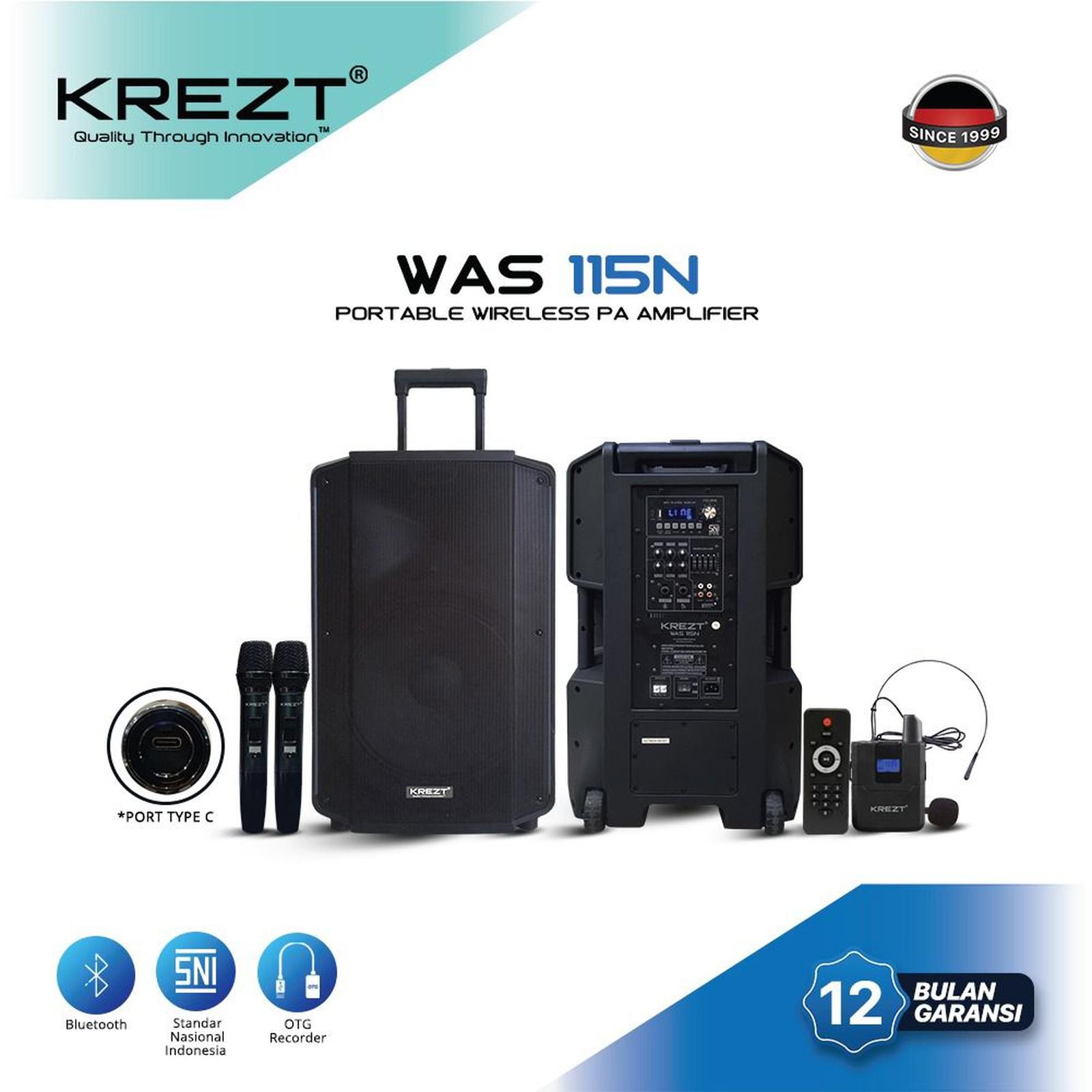 Speaker Portabel 15 Inch KREZT WAS 115N Bluetooth Otg 2 Mic Wireless + Headset Mic
