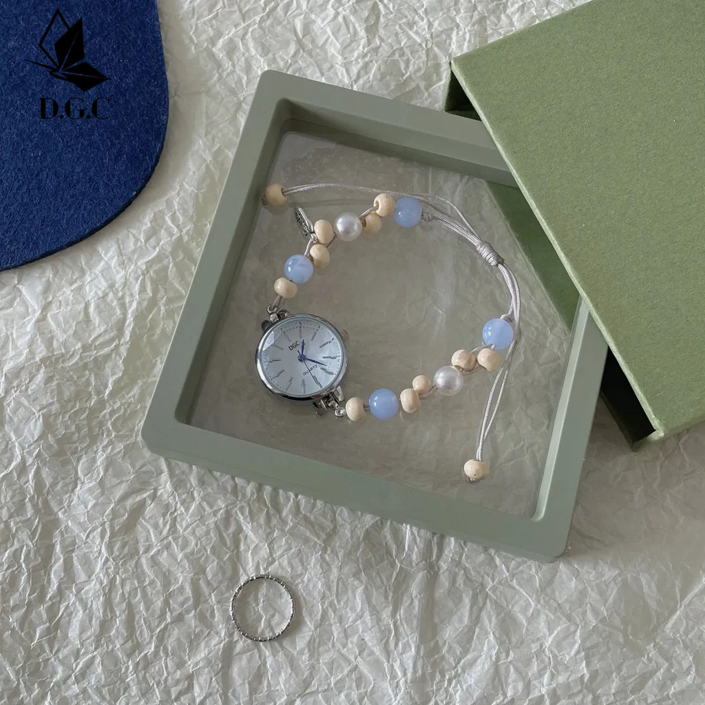 DGC 10463 Jam Tangan Quartz Wanita Serut Terbaru Mewah Gelang Analog Adjustable Rantai Stainless Steel Fashion