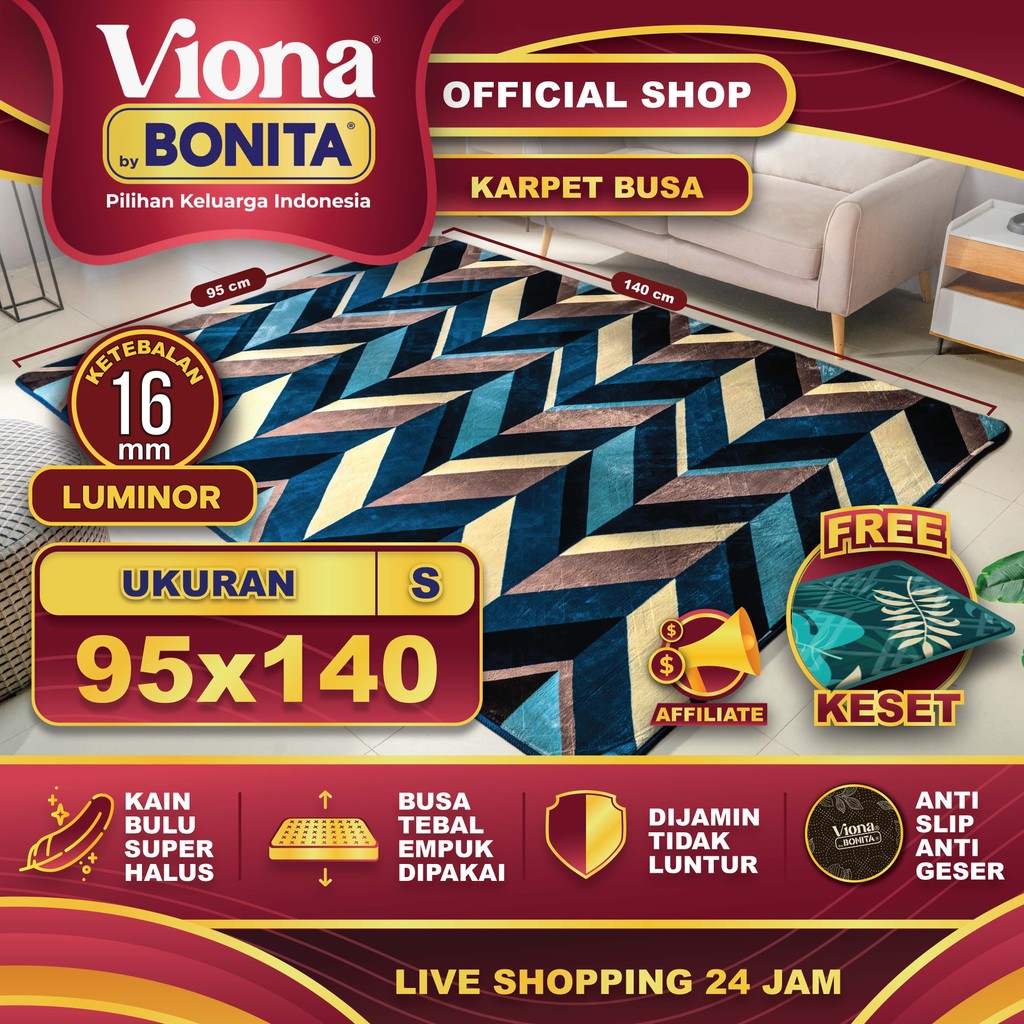 [Mall] [95x140] Karpet Busa Malaysia Motif Minimalis 16mm – Anti Selip | Viona Bonita