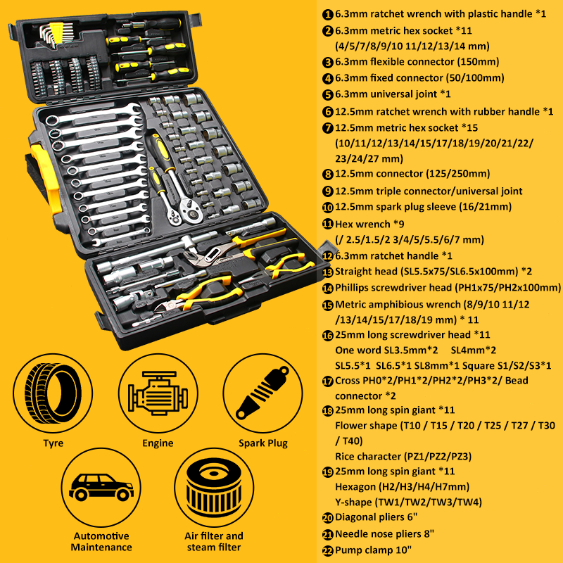 KEELAT 110 Pcs Kunci Sok Set【60HRC】Socket Full Lengkap Socket Tool Kit Pas Ring Motor Kunci Socket Wrench Pas Sok Shock