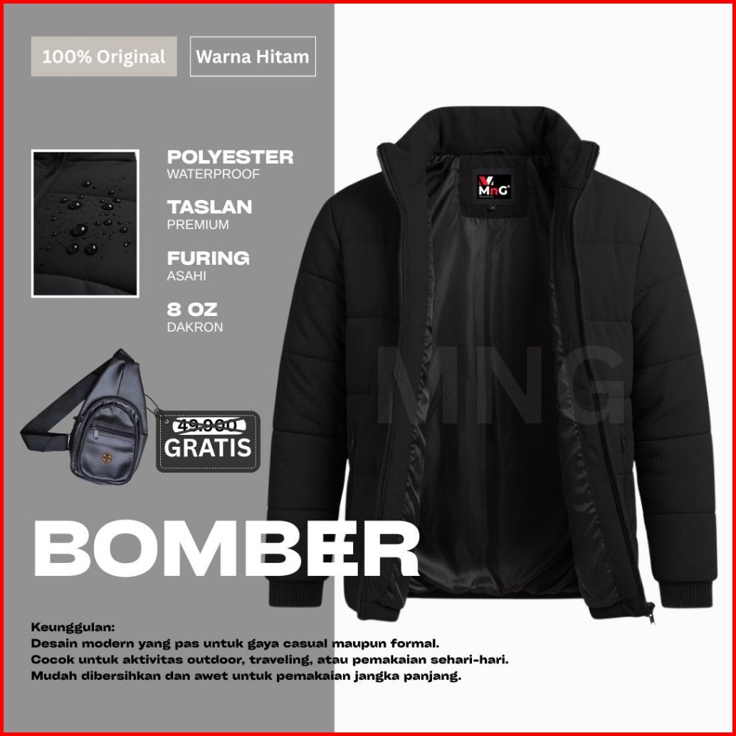 Mngstoreco Jaket Bomber Musim Dingin Pria Puffer Winter Tebal Anti Air