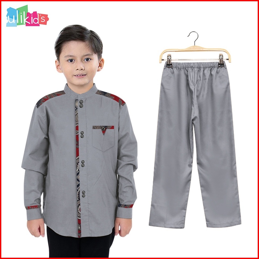 Ulikids Baju Setelan Koko Anak Kombinasi Batik Pakistan Anak Laki-laki 4 Tahun - 10 Tahun Lengan Panjang Terlaris 2023