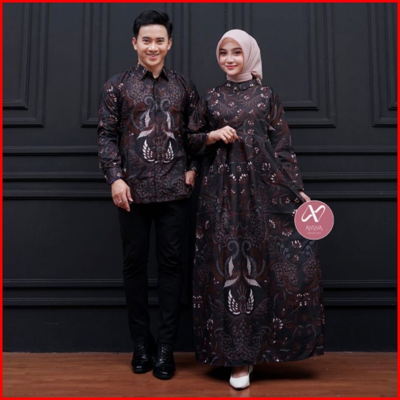 Harga Sepasang Anina Ck-1 Pakaian Couple Batik Kemeja Lengan Panjang Dan Gamis Busui Bahan Polymicro Premium