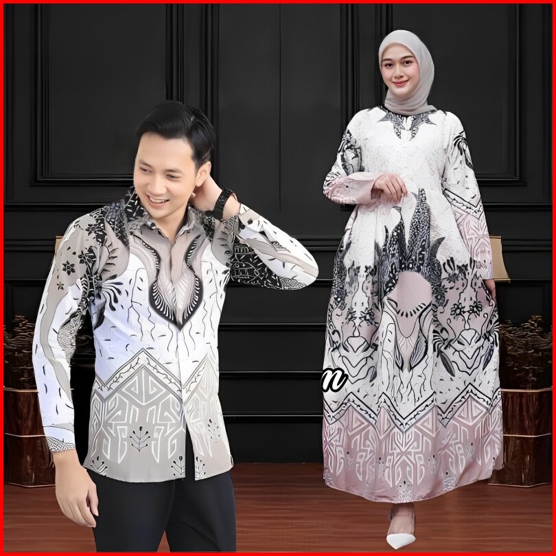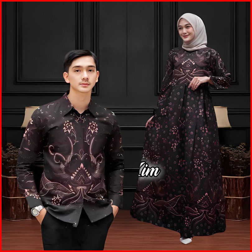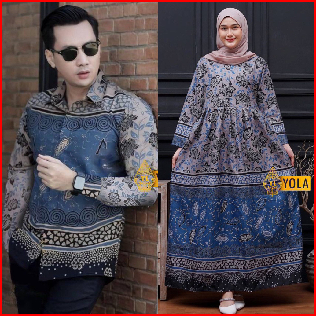 Baju Batik Couple Kemeja Panjang Gamis Maxi Tali Samping Motif Batik
