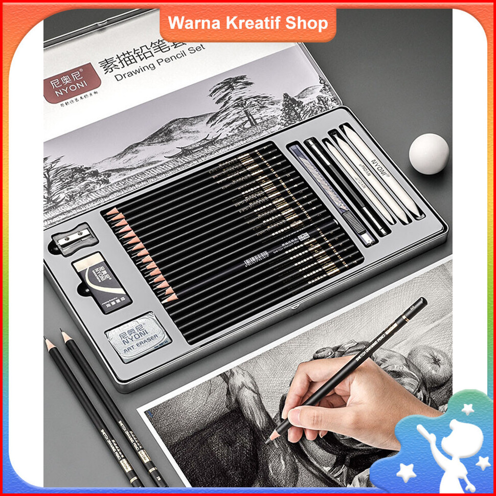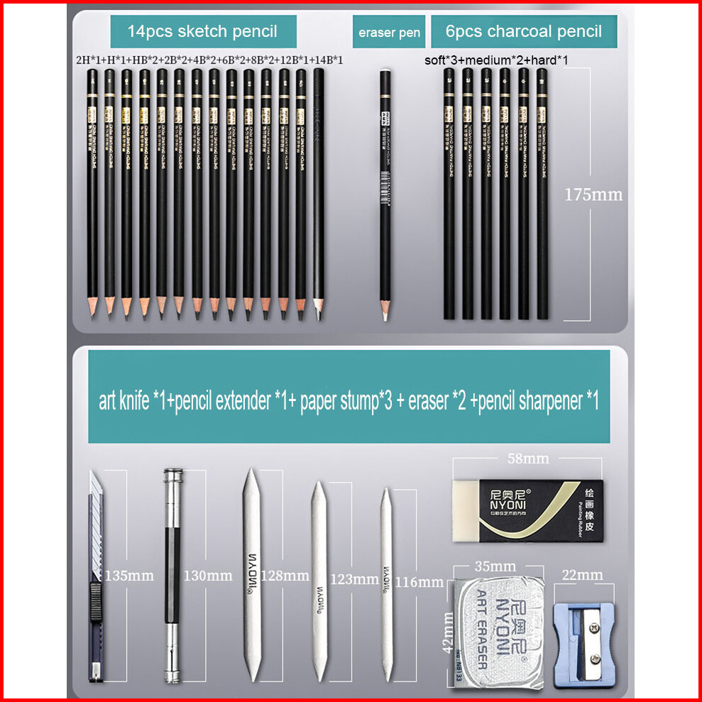 29 Pcs Art Sketch Drawing Pencil Set Including Paper Eraser Pen Pencil Sharpener Kneadable Eraser Art Knife Extender