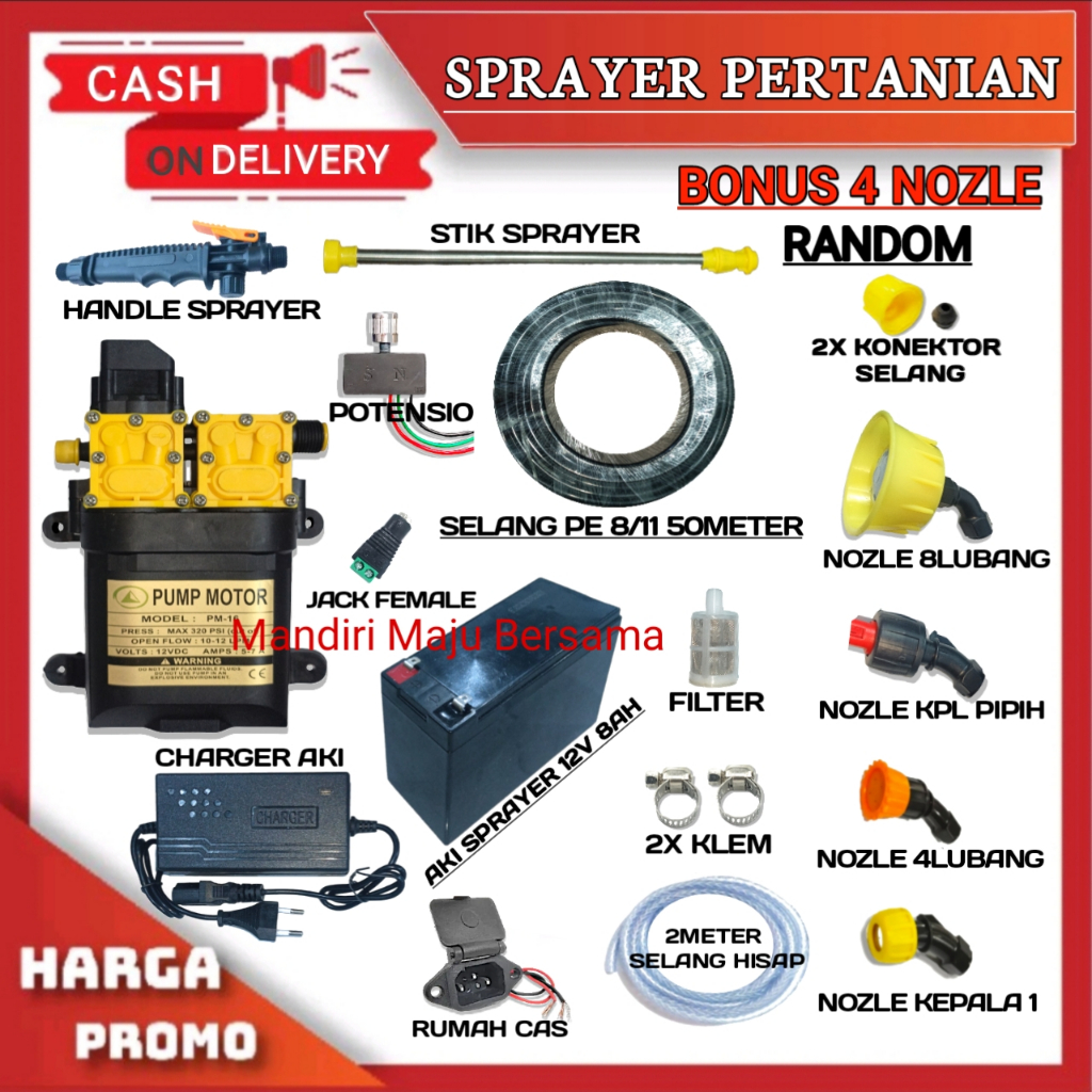 PAKET SPRAYER PERTANIAN ALAT SEMPROT HAMA DINAMO POMPA DOBEL 320PSI SELANG 50 METER ATAU 100PSI PILIH VARIAN