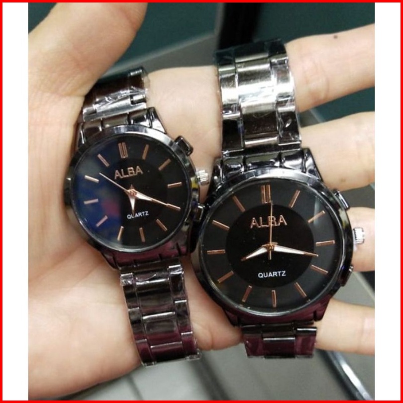 Terima Jam Tangan Couple Alba Full Hitam Harga 1pcs Strap Rantai Stell Dikirim Jakarta