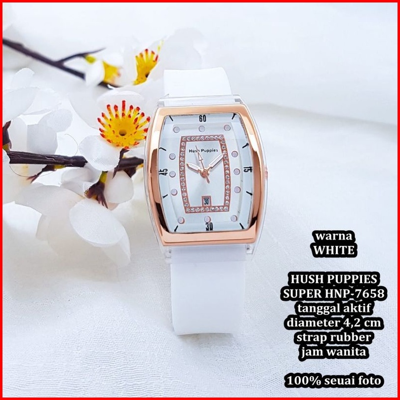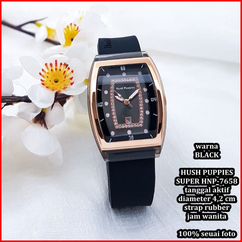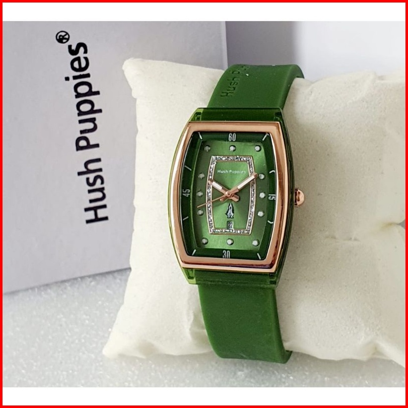 Jam Tangan Wanita Hush Puppies Oval Strap Rubber Tanggal Aktif