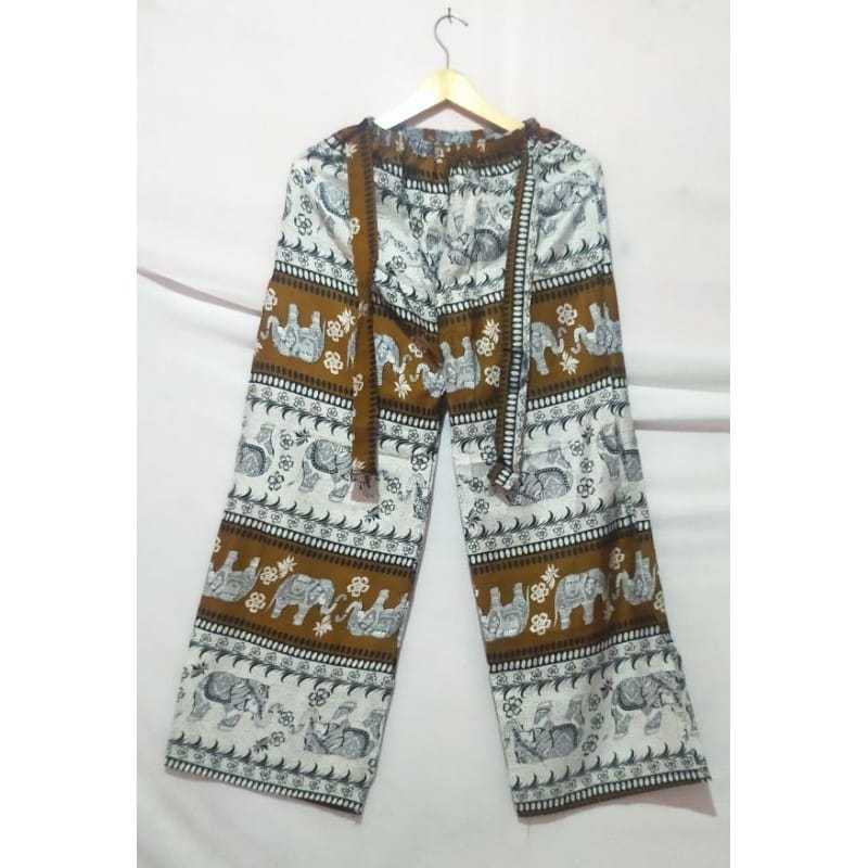 Celana Kulot Panjang Wanita Rayon – Batik Motif Etnik Gajah Kekinian Adem & Nyaman | Ravado
